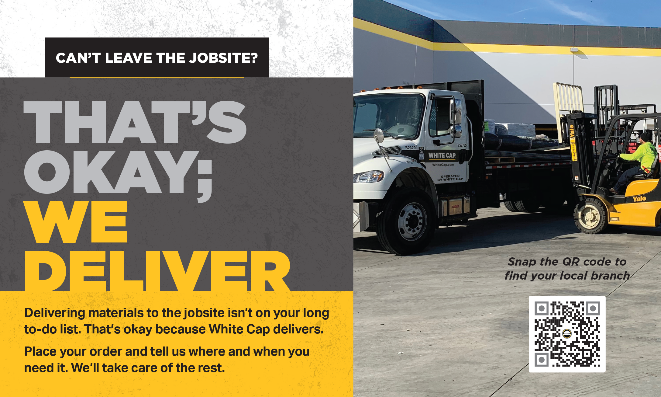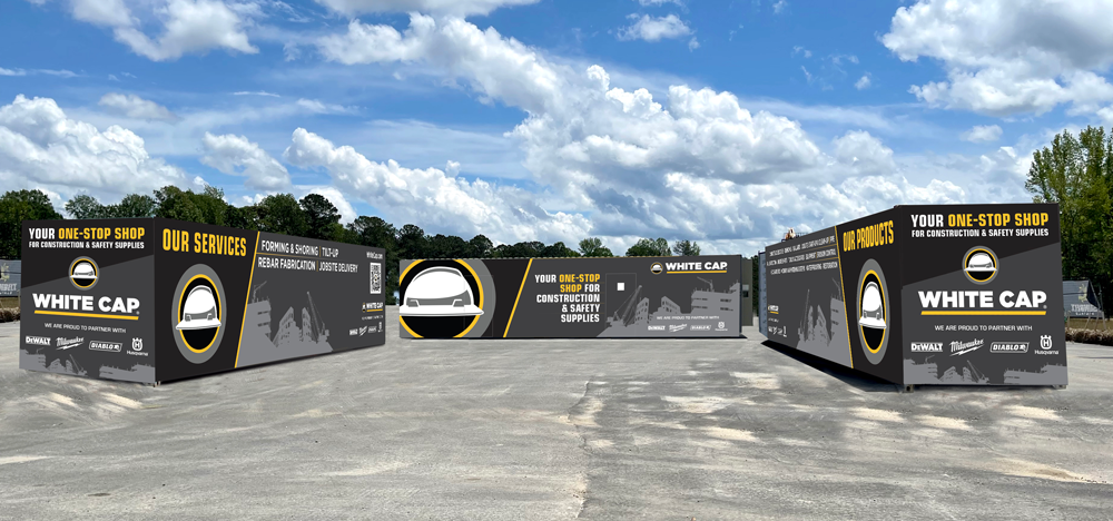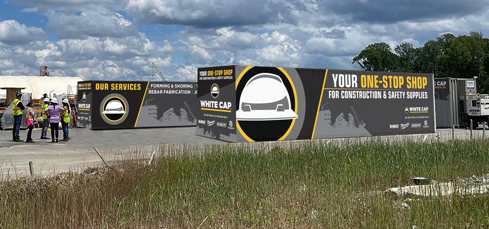 The final design delivered a contemporary, high‑impact look that elevated White Cap’s presence on jobsites. The branding is clear, consistent, and unmistakable, even from long distances.